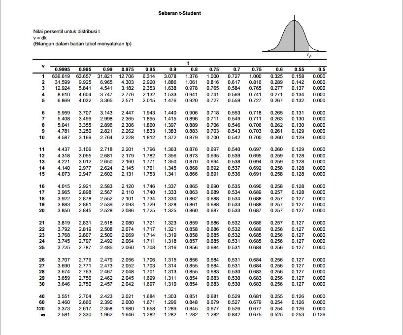 ([~)T Tabel Statistik - Tabel t (Lengkap)